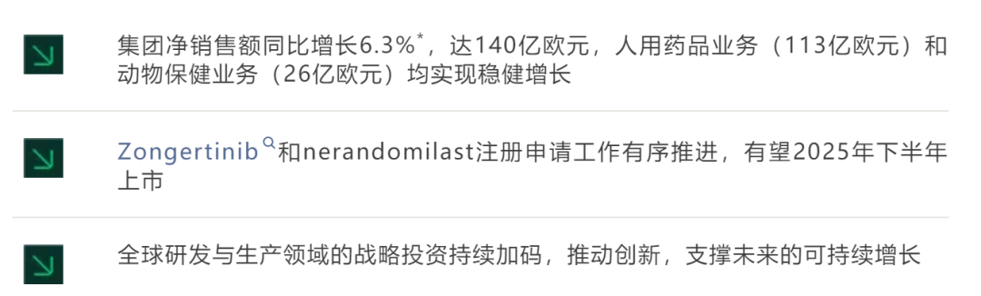 勃林格官方表示,业绩增长主要受益于人用药品业务关键产品的强劲需求,其中欧唐静®净销售额达43亿欧元,维加特®净销售额达20亿欧元,这些产品持续为全球患者带来有意义的改变。